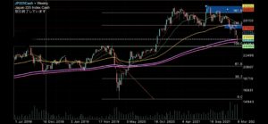 ただ、再度先週末に落ちてきたところを買い少し含み損はでているものの、この恐怖の絶頂期が再度買い場の始まりになるのではないかとも思っておりますので、本日は日経225(JP225cash)に焦点をあてチャート分析を行っていこうと思っております。