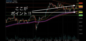 まずは週足からみる長期視点ですが、今、前回高値Fibo100.0.%まで戻してきておりFibo61.8%で200EMAと重なって底値固い動きになっていると考えております。