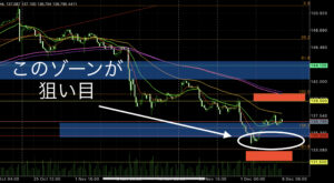 そして最後に1時間足からみる短期視点についてですが、今短期視点でもFibo161.8%下の水準で価格が推移していますので買いを仕掛けるには絶好の位置ではないかと考えております。